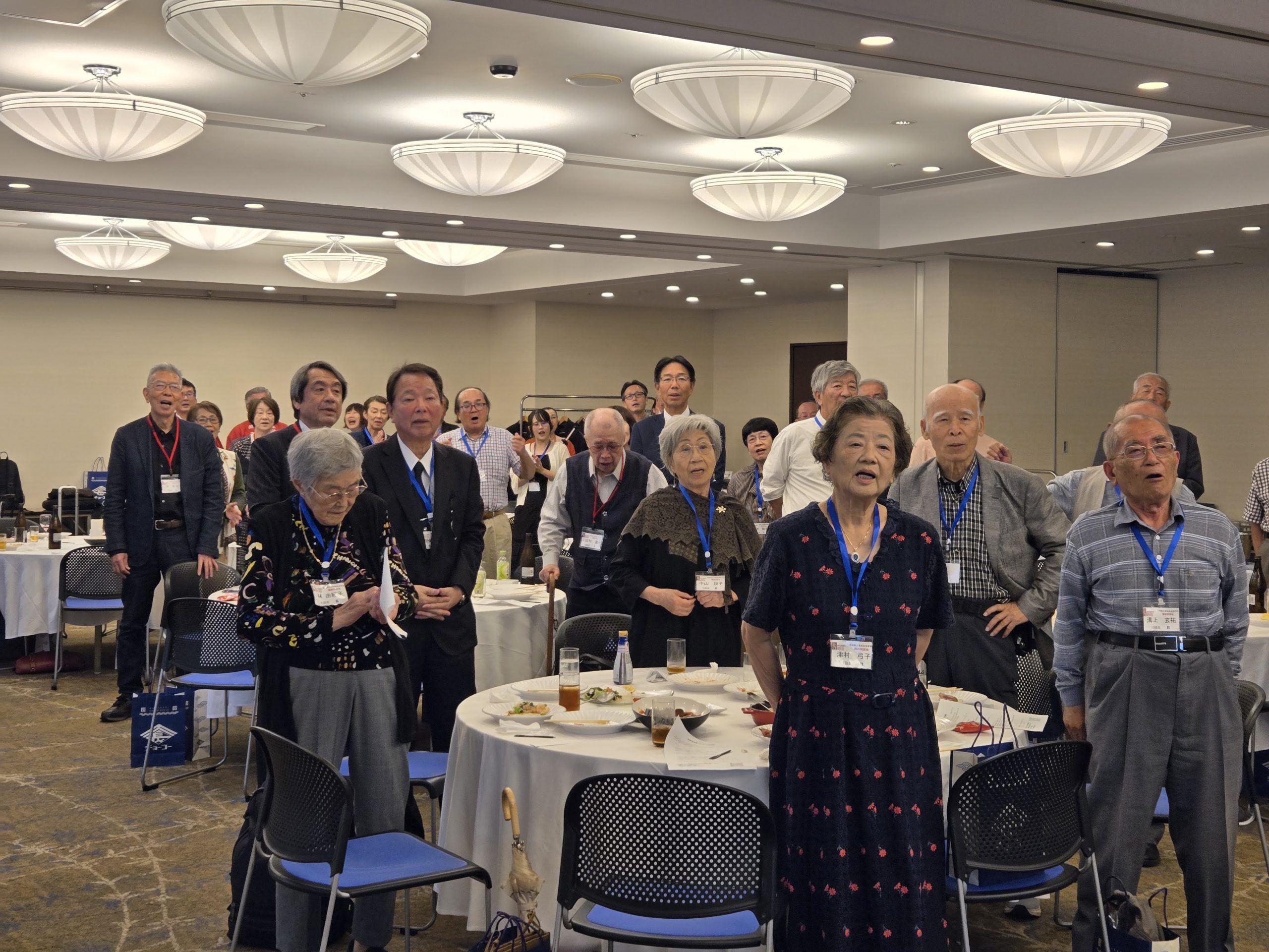 しばらく歓談の後、校歌斉唱。皆さまの大きな声で「東、東、光あり」と歌い上げました。