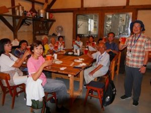 NHKの朝の連ドラにも登場した重要文化財の旧杉山家住宅を見学。江戸期の町家建築を色濃く残した屋内や見事な書画(ほぼ読めませんでした(笑))や、風情たっぷりの庭など、みなさん興味津々です。なかでも滝を思わせるように咲き誇る萩の花にはくぎ付け。