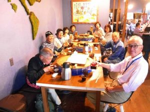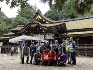 。おいしいお弁当とふるまいのお茶、楽しいおしゃべりの後は大神神社神社拝殿へ。