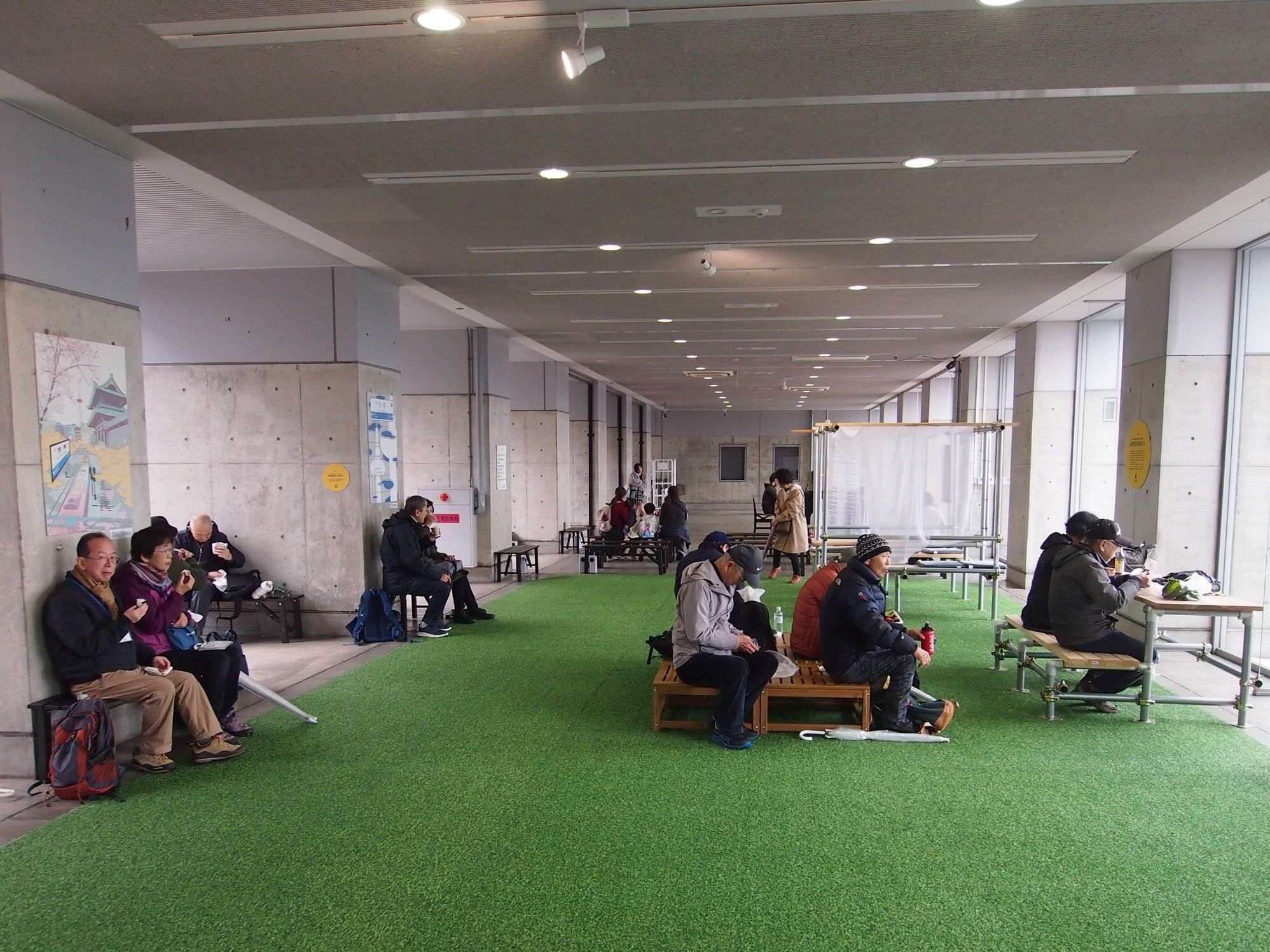 その後は東広場へ抜け、南広場を経由して大階段へ戻るルートを散策。再び東広場に戻り、屋内ベンチで少し早めの昼食をとりました。