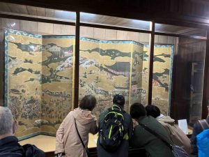 続いて豊国神社へ。国宝の唐門から参拝し、宝物館では豊国祭礼図屏風、豊公点茶図、秀吉の歯など、豊臣秀吉ゆかりの品々を拝観しました。屏風図は当時の賑わいが伝わるだけでなく、「○○を探せ」的な楽しみもあり、つい見入ってしまいました。