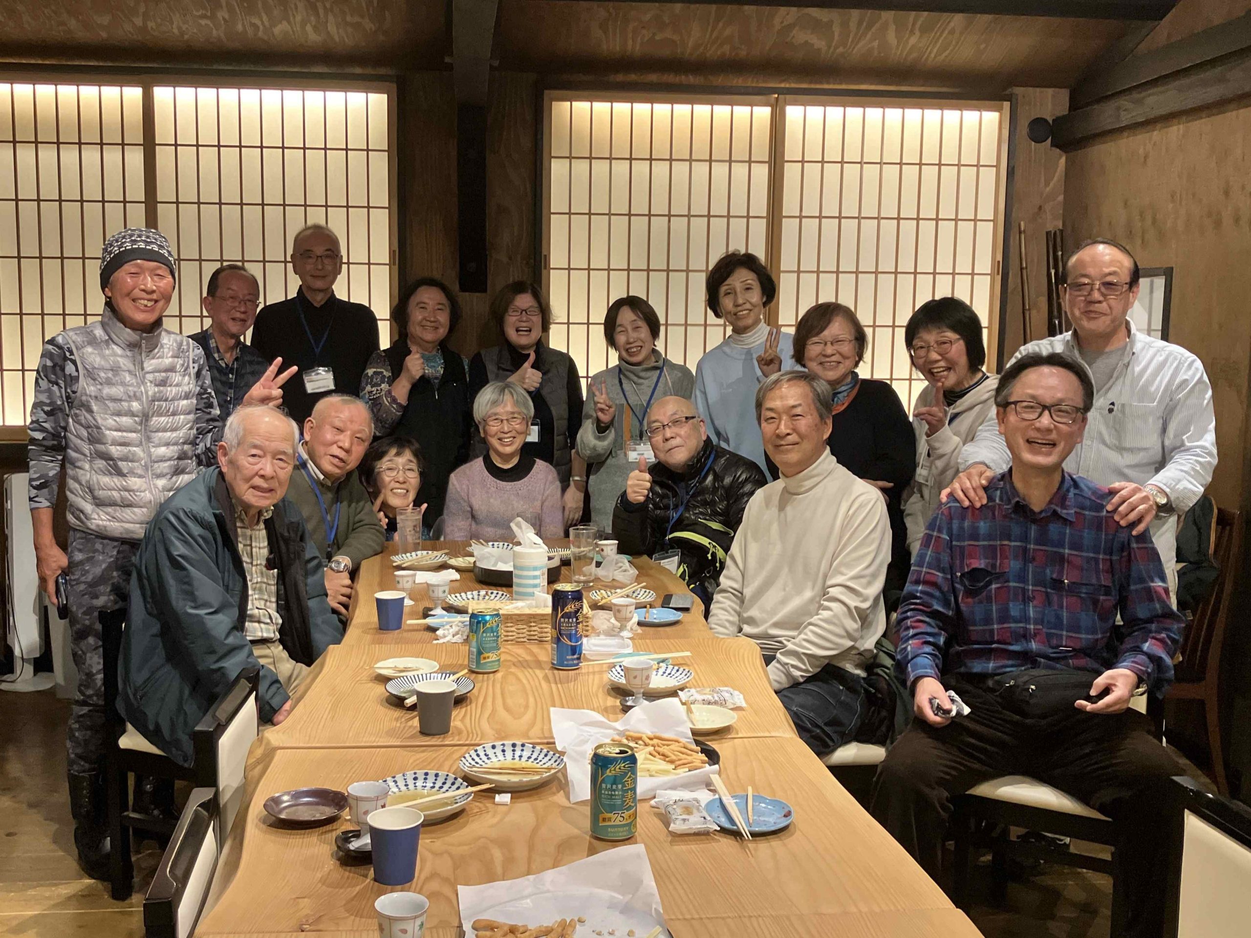 その後は16名でTさんのお店に向かい、反省会兼忘年会。Tさん、今回も楽しい時間をありがとうございました。そして、雨にも負けず、さるく会にご参加くださった皆さんにも心から感謝いたします。