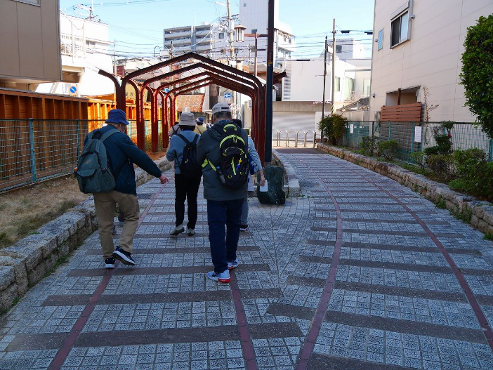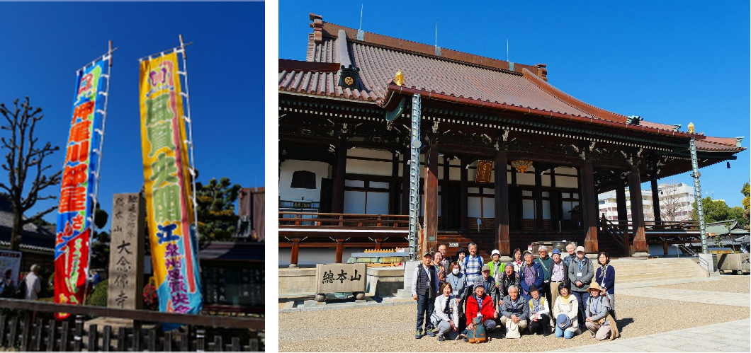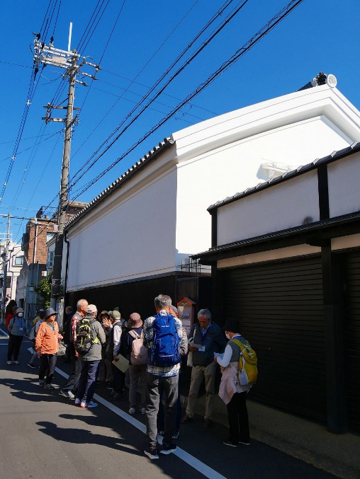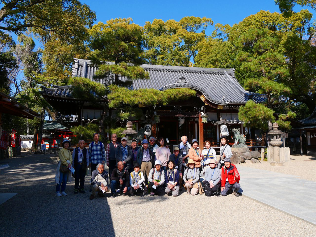 汗ばむ晴天のもと、23名で大阪市平野区の平野郷をさるきました。平野郷は聖徳太子が野原に安置した薬師如来像(全興寺)をもとに人が集まり集落を形成していったとのことで、中世には環濠と土塁で守られた自治都市として発展したようです。当日は狭い平野郷を右にいったり、左に行ったりしてさるきました。